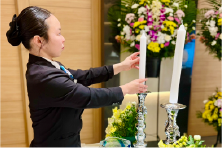 焼香の順路確認や、照明・音響機器の動作確認を行います。 -